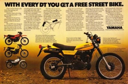 Yamaha had a full line of DT street-and-trail machines, and some of them are still available elsewhere in the world today. Photo: Yamaha