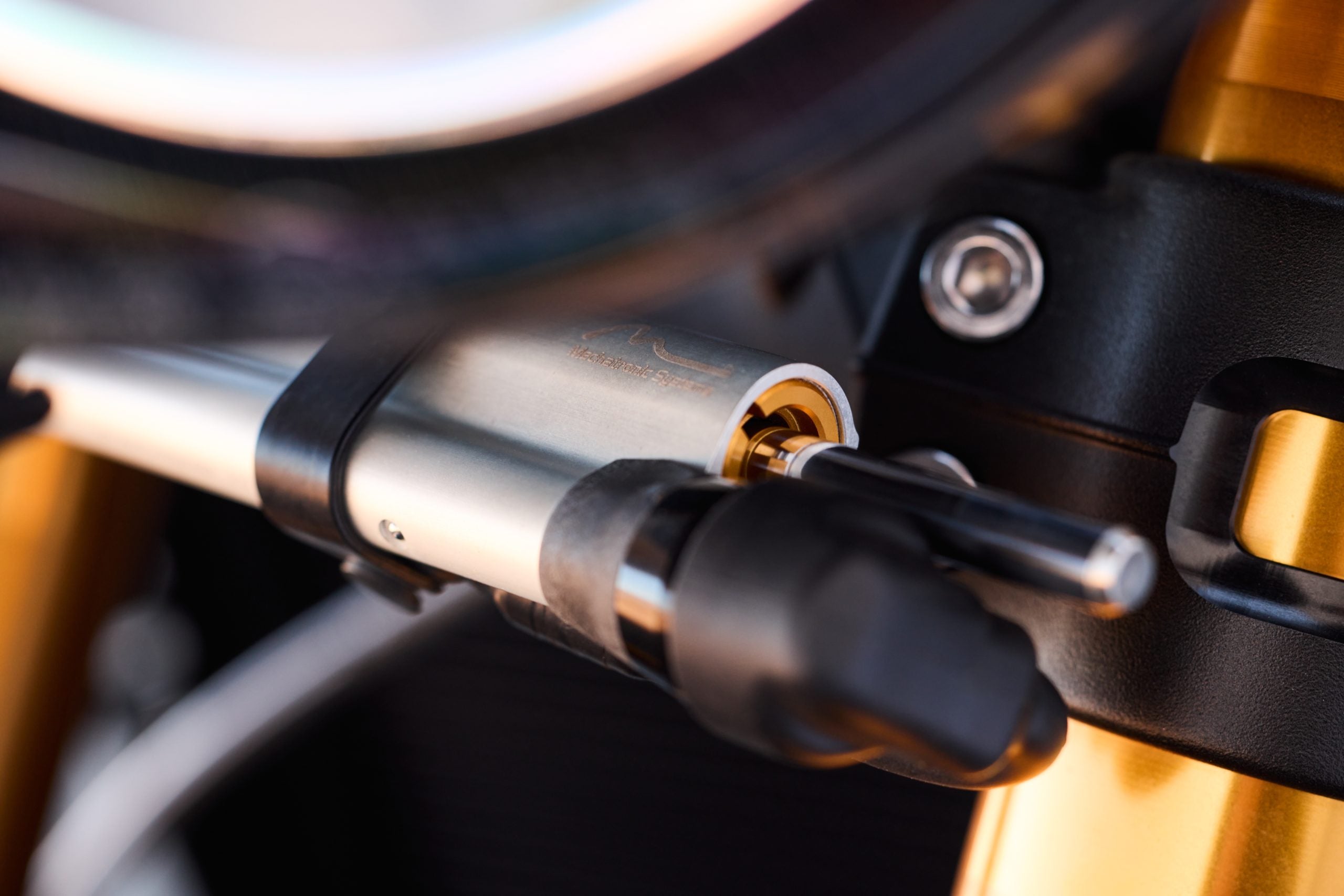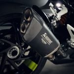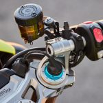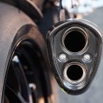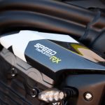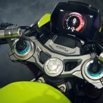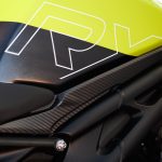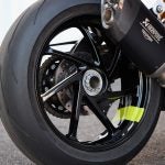 So what’s so great about the new RX model? Along with the carbon-fiber and the trick-looking, trick-sounding exhaust, there’s a new Ohlins SD EC electronically-adjustable steering damper instead of the RS model’s manual-adjust damper. The Ohlins SmartEC3 electronic semi-active suspension from the RS model is also fitted to the RS model, as well as the same Brembo Stylema brake calipers and MCS radial master cylinder.
