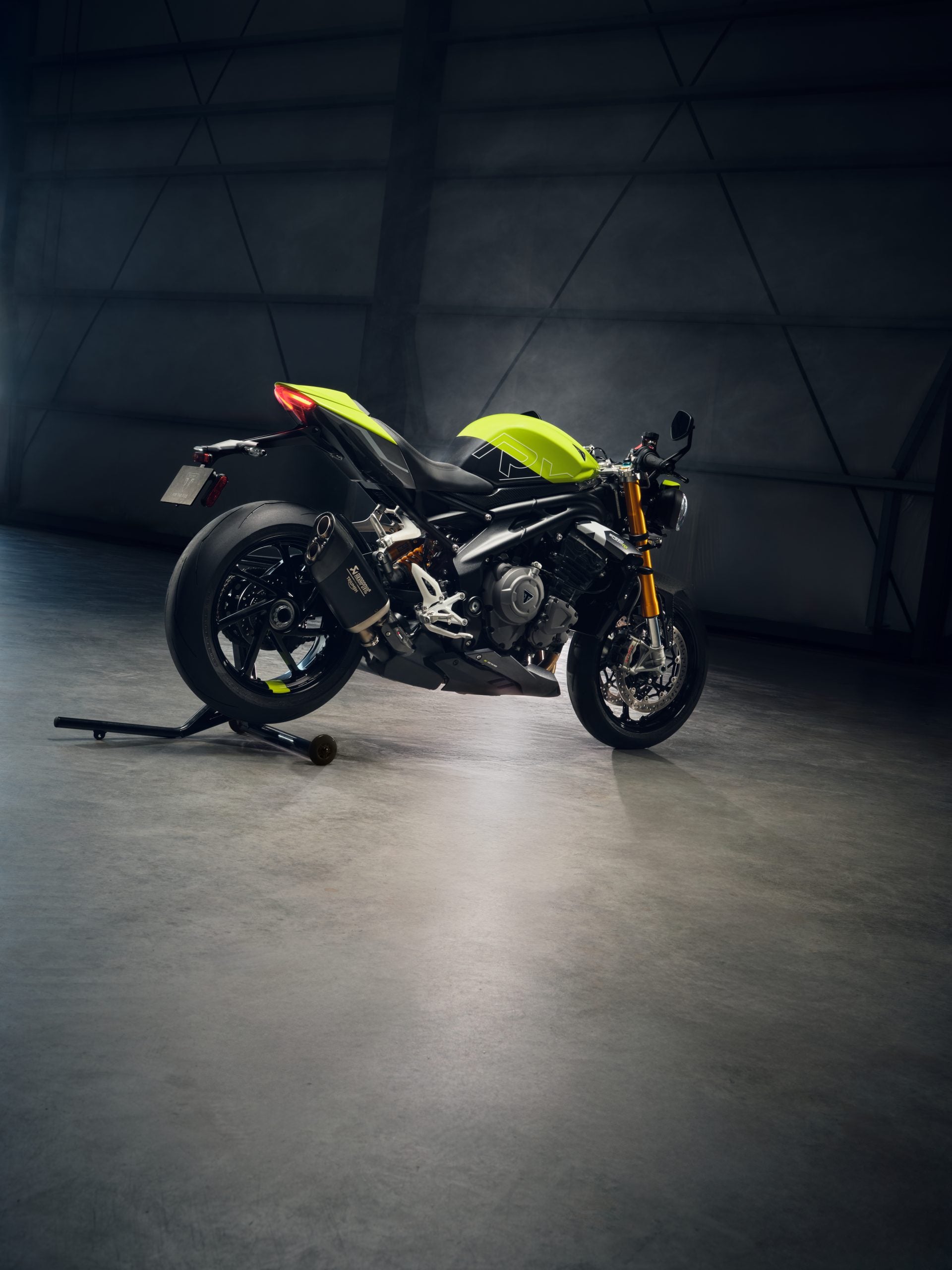 That new can did not add any muscle, either. The engine is unchanged from the 12-valve 1160cc triple that the standard Speed Triple uses, and it’s rated for the same 180.5 horsepower and 94.4 pound-feet of torque as the RS model. Limiting production to 1,200 units has added no speed.