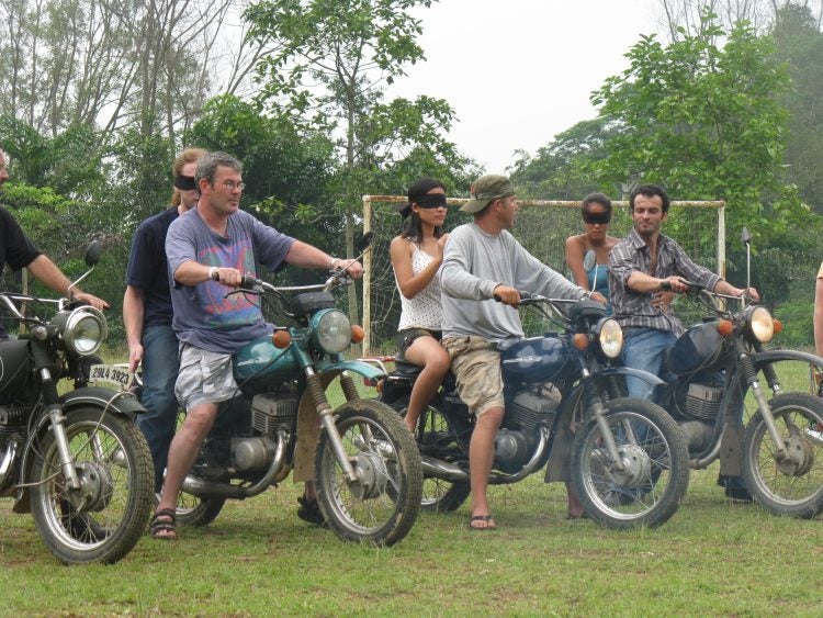 No helmets, short pants, and blindfolds for the passengers: not exactly a traditional state of readiness for a motorcycle ride, but it makes a terrific Featured Photo for our newest Photos of the Week page. Submitted by @Larry, it’s a shot of a “fun-filled weekend norh of Hanoi whereby Minsk enthusiast expats celebrate all things Minsk.” The blindfolded passenger operates on instructions shouted back by the pilot and tries to hit a target with a thrown innertube. “Very few crashes,” Larry says.