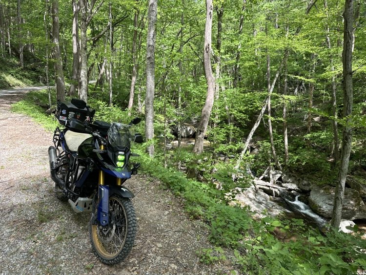 Here are some shots from @Hyguy of his 2023 Suzuki V-Strom DE (and some of him, too) enjoying the greenery of the northeastern United States a few days ago.