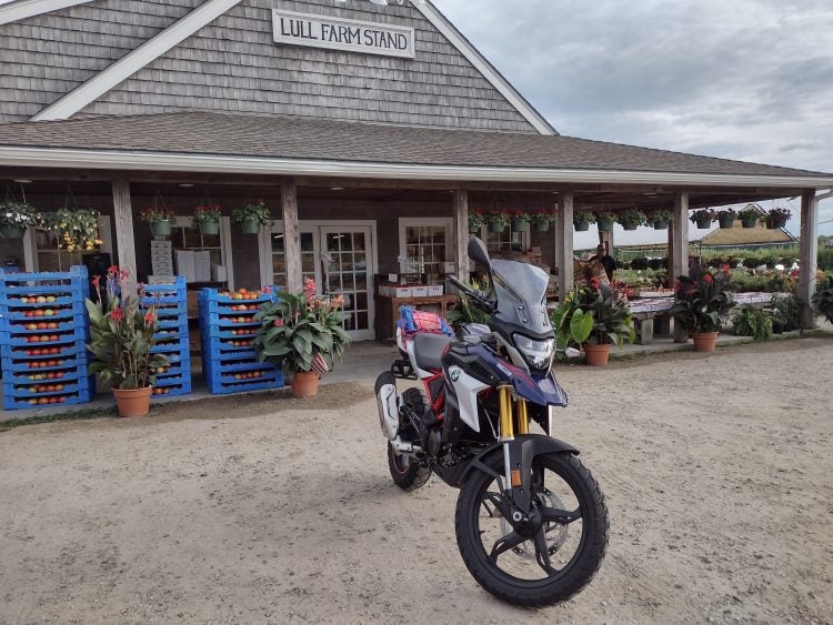 Enter the 310 GS. It’s light enough to be very easy to ride on dirt, push around the garage, load up on a trailer when necessary. But it has a pretty stiff stock suspension and a factory rear rack, making it much more capable when it comes to my favorite activity: motorcycle camping.