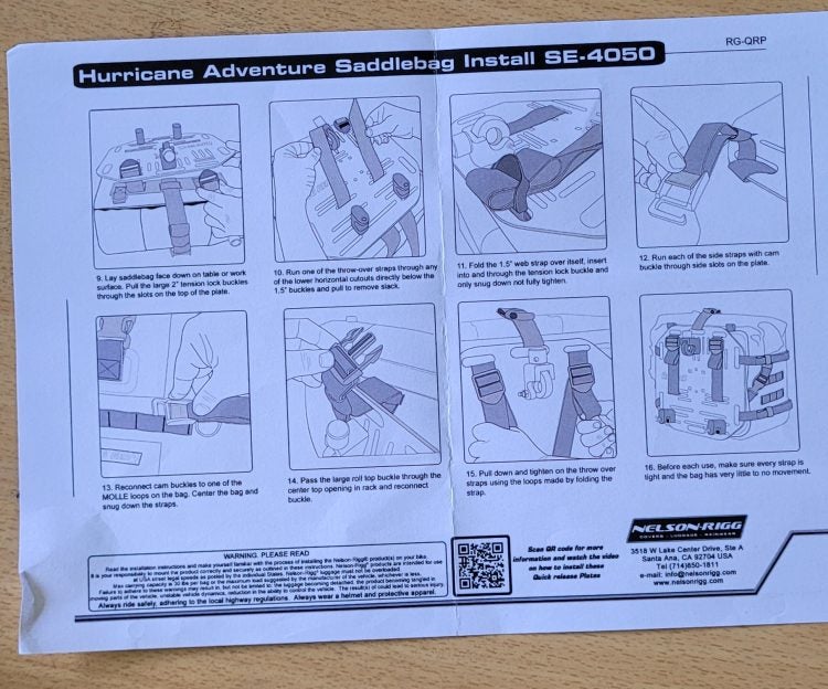 The plates are designed to work with Nelson Rigg’s own saddlebags, and that’s what I used. But you should be able to use saddlebags from a wide variety of manufacturers, if you are willing to do a bit of jimmy-rigging to make it work.