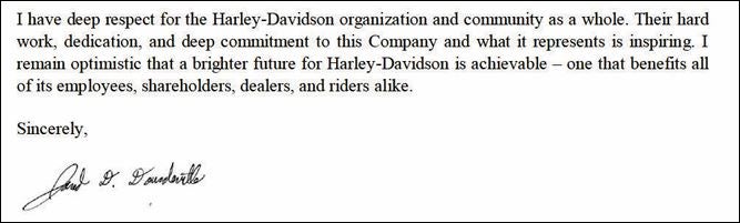 Segment from Dourdeville’s letter to Harley-Davidson. Image: H Partners