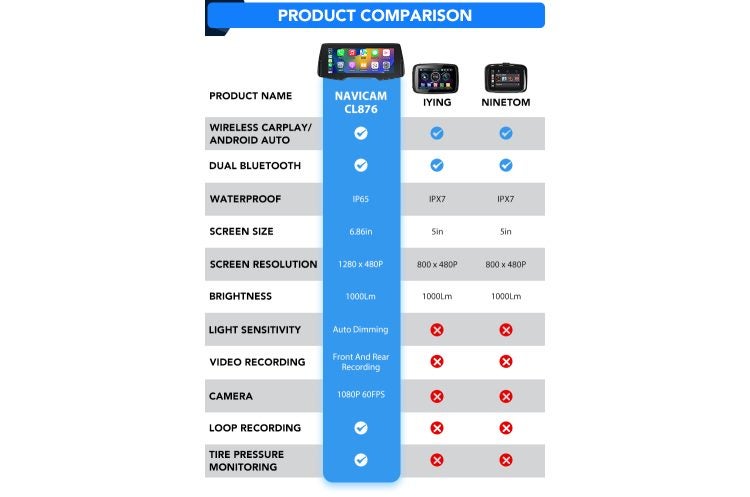 You may remember that we’ve reviewed some similar, but less-advanced units on ADVrider before. Here’s how NaviCam’s marketeers stack up their product against some competitors’ older units. We can’t say whether the NaviCam is better or not, without testing it, but it does look good on a spec sheet. Photo: NaviCam