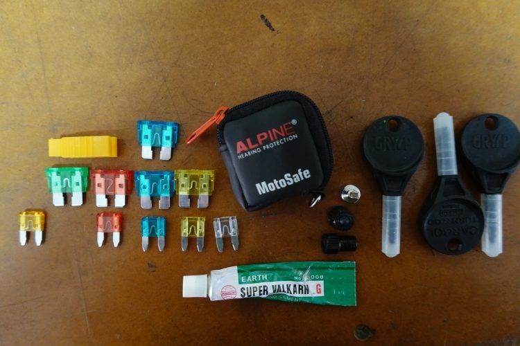 What got me thinking along these lines was a comment by a friend whom I’d told about a recent crash out on a farm road. “What,” he said, “and you were out there alone?” Yes I was. I spend a lot of time riding empty gravel roads alone. What would I do if I ran out of any of those three elements? I can pick up a bike by myself even if it takes a little while given my aged bones. I carry a toolkit, a combination of the pathetic but specific tools that come with the bike plus a high quality set sourced from Snap-On. This allows me to do any work I might want (and be able) to do on the road on the F 750 GS, but I’m sure you’ve noted that it would not help me if I lacked air, power or fuel.