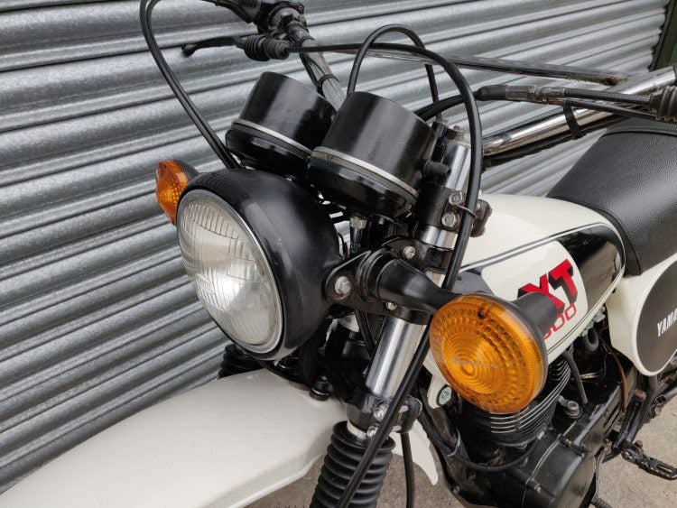 Also, like all trail bikes of the time, the XT500 had a set of dual rear shocks. Although Yamaha had a major part in the Great Monoshock Revolution, that was still in the future, and you had to make do with old-school twin shocks on the rear. The only adjustment was preload in back; the front forks are pretty agricultural by today’s standards. So are the brakes—the original XT had drum brakes in front and back.
