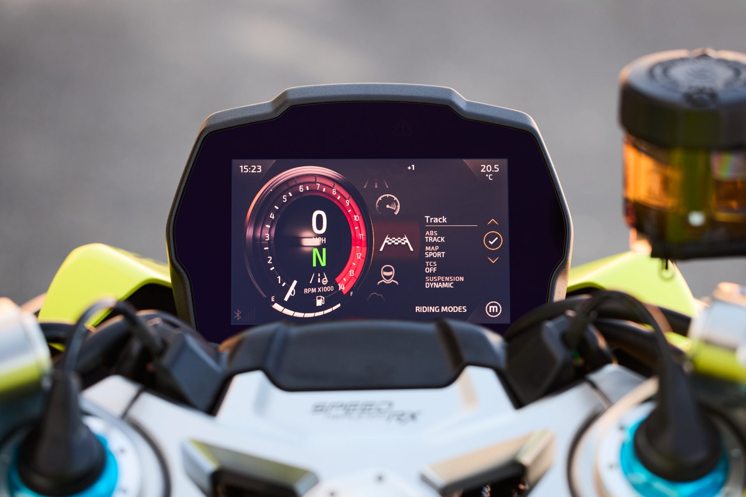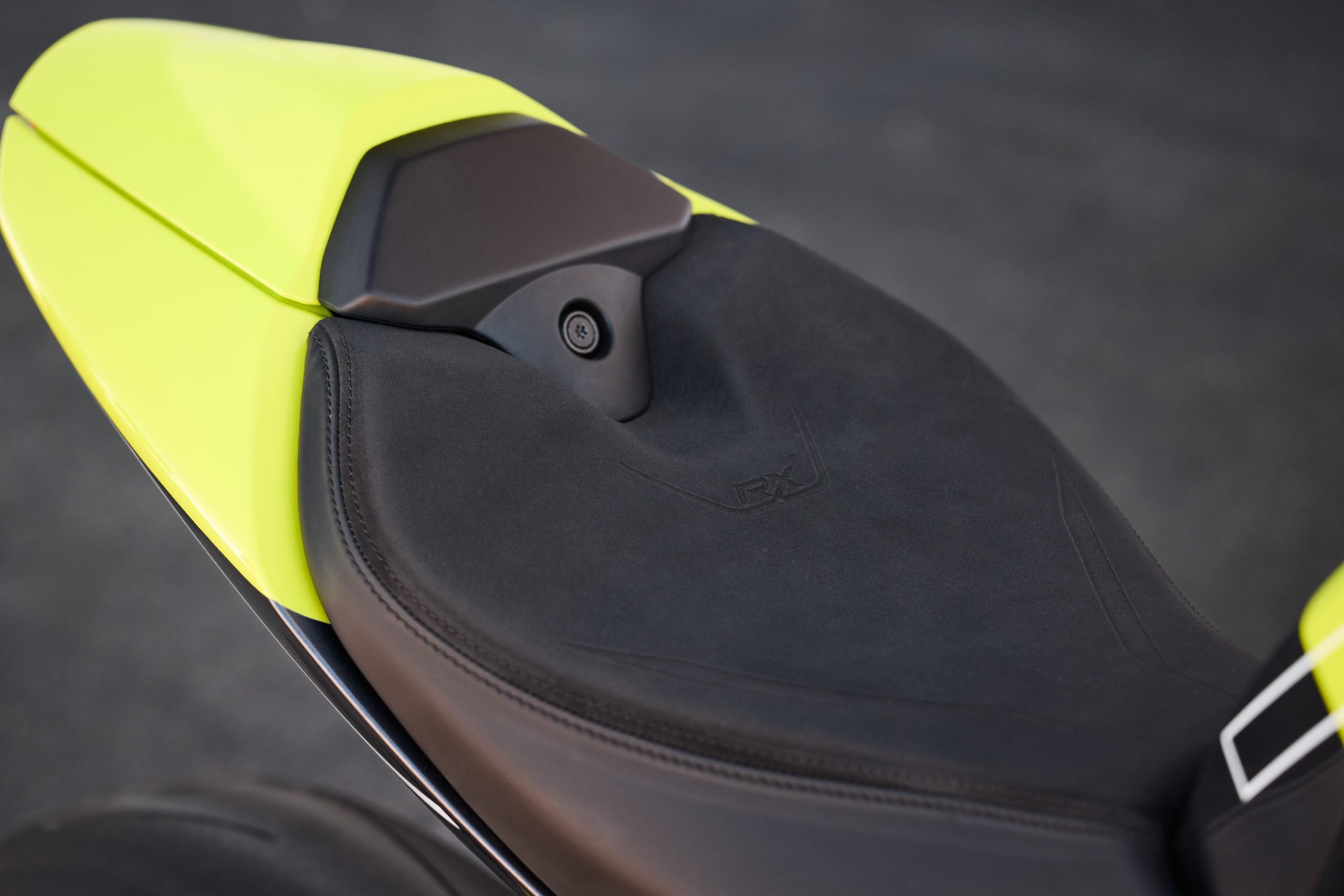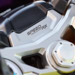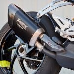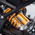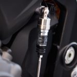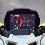 So what’s so great about the new RX model? Along with the carbon-fiber and the trick-looking, trick-sounding exhaust, there’s a new Ohlins SD EC electronically-adjustable steering damper instead of the RS model’s manual-adjust damper. The Ohlins SmartEC3 electronic semi-active suspension from the RS model is also fitted to the RS model, as well as the same Brembo Stylema brake calipers and MCS radial master cylinder.