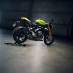 That new can did not add any muscle, either. The engine is unchanged from the 12-valve 1160cc triple that the standard Speed Triple uses, and it’s rated for the same 180.5 horsepower and 94.4 pound-feet of torque as the RS model. Limiting production to 1,200 units has added no speed.