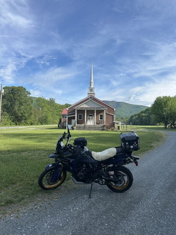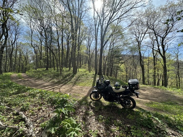 Here are some shots from @Hyguy of his 2023 Suzuki V-Strom DE (and some of him, too) enjoying the greenery of the northeastern United States a few days ago.