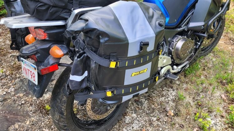 Once the saddlebags were mounted to the plates, Nelson Rigg’s excellent cambuckle-equipped Rigg Straps made it easy to secure them in place. Photo: Zac Kurylyk