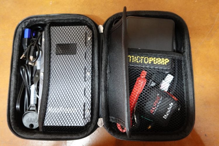 The jump starter, the pump and the various bits and pieces that fit into the case.